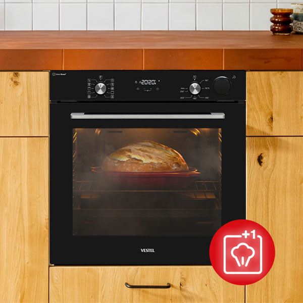 Dank der Heißluftschild-Technologie von Vestel ist das Problem der heißen Luft, die Ihnen beim Öffnen der Ofentür ins Gesicht schlägt, endlich gelöst! Mit dem Luftvorhang, der sich beim Öffnen der Ofentür aktiviert, können Sie Ihren Ofen sicher benutzen und Ihr Essen bequem kontrollieren, ohne dass heiße Luft auf Ihre Hände und Ihr Gesicht trifft. So verläuft Ihr Make-up nicht, Ihre Frisur bleibt intakt und Ihre Brille beschlägt nicht!